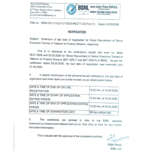 BSNL Recruitment 2026 ಸರ್ಕಾರಿ ಉದ್ಯೋಗಕ್ಕಾಗಿ ಕಾಯುತ್ತಿರುವ ಲಕ್ಷಾಂತರ ಅಭ್ಯರ್ಥಿಗಳಿಗೆ ಈಗ ದೊಡ್ಡ ಸಿಹಿ ಸುದ್ದಿ ಬಂದಿದೆ. ಭಾರತ್ ಸಂಚಾರ್ ನಿಗಮ್ ಲಿಮಿಟೆಡ್ (BSNL) ತನ್ನ ಬಹುನಿರೀಕ್ಷಿತ Senior Executive Trainee (SET) Recruitment 2026 ಅರ್ಜಿ ಸಲ್ಲಿಸುವ ಕೊನೆಯ ದಿನಾಂಕವನ್ನು ಮತ್ತೆ ವಿಸ್ತರಿಸಿದೆ.