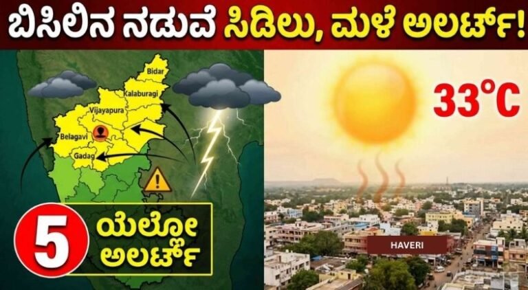 ಬಿಸಿಲಿನ ಮಧ್ಯೆ ಮಳೆಯ ಸಿಡಿಲು! ಇಂದು ಉತ್ತರ ಕರ್ನಾಟಕದ 5 ಜಿಲ್ಲೆಗಳಿಗೆ ಯೆಲ್ಲೋ ಅಲರ್ಟ್ – IMD ಎಚ್ಚರಿಕೆ.