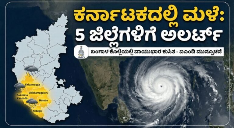 📌 ಮುಖ್ಯಾಂಶಗಳು (Highlights) ✔ ಬಂಗಾಳ ಕೊಲ್ಲಿಯಲ್ಲಿ ವಾಯುಭಾರ ಕುಸಿತ; ದಕ್ಷಿಣ ಒಳನಾಡಿನ 5 ಜಿಲ್ಲೆಗಳಲ್ಲಿ ಮಳೆಯ ಸಾಧ್ಯತೆ✔ ಕೊಡಗು–ಶಿವಮೊಗ್ಗ ಮಲೆನಾಡು ಭಾಗದಲ್ಲಿ ಮೋಡ ಕವಿದ ವಾತಾವರಣ✔ …