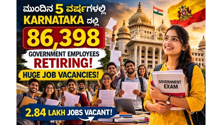 Karnataka Government Jobs ಕರ್ನಾಟಕದಲ್ಲಿ ಸರ್ಕಾರಿ ಉದ್ಯೋಗಗಳ ಕುರಿತು ಮಹತ್ವದ ಮಾಹಿತಿ ಹೊರಬಂದಿದೆ. ಅಧಿಕೃತ ಅಂಕಿಅಂಶಗಳ ಪ್ರಕಾರ, ಮುಂದಿನ ಐದು ವರ್ಷಗಳಲ್ಲಿ ರಾಜ್ಯದ ವಿವಿಧ ಇಲಾಖೆಗಳಲ್ಲಿನ ಒಟ್ಟು 86,398 …