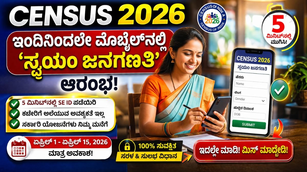 📢 Census 2026: ಇನ್ನು ಮುಂದೆ ಮನೆಬಿಟ್ಟು ಹೊರಗೆ ಹೋಗ್ಬೇಕಾಗಿಲ್ಲ – ಮೊಬೈಲ್ನಲ್ಲೇ ಜನಗಣತಿ!