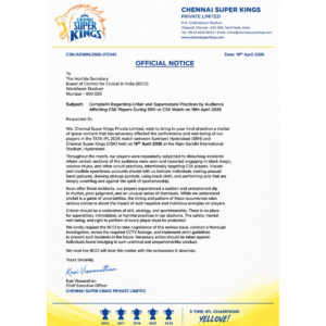 ವರದಿಗಳ ಪ್ರಕಾರ, CSK ಈ ಬಗ್ಗೆ ಭಾರತೀಯ ಕ್ರಿಕೆಟ್ ನಿಯಂತ್ರಣ ಮಂಡಳಿಗೆ (BCCI) ಅಧಿಕೃತ ದೂರು ಸಲ್ಲಿಸಿದೆ.