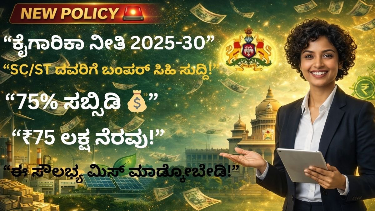 SC/ST ಉದ್ಯಮಿಗಳಿಗೆ ಸುವರ್ಣಾವಕಾಶ! 75% ಸಬ್ಸಿಡಿ, ₹75 ಲಕ್ಷ ನೆರವು – ಕರ್ನಾಟಕ ಕೈಗಾರಿಕಾ ನೀತಿ 2025-30 ಸಂಪೂರ್ಣ ಮಾಹಿತಿ