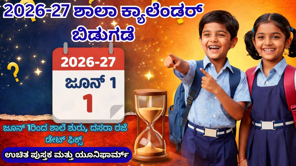 2026-27ನೇ ಶೈಕ್ಷಣಿಕ ಸಾಲಿನ ಅಧಿಕೃತ ಶಾಲಾ ಕ್ಯಾಲೆಂಡರ್ ಈಗ ಪ್ರಕಟವಾಗಿದ್ದು, ಇದು ಲಕ್ಷಾಂತರ ಕುಟುಂಬಗಳಿಗೆ ಬಹಳ ಮುಖ್ಯ ಮಾಹಿತಿ ನೀಡುತ್ತದೆ.