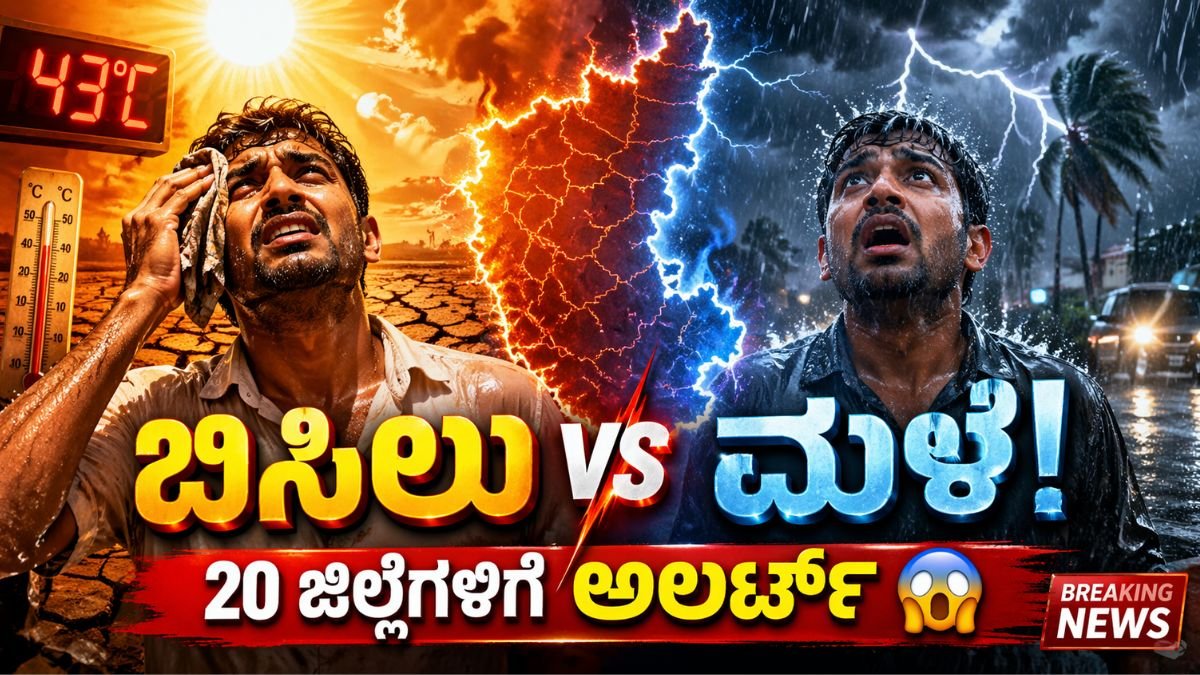 ಜನರು ಈಗಾಗಲೇ ಬಿಸಿಲಿನಿಂದ ಹೈರಾಣಾಗಿರುವಾಗಲೇ, ಹವಾಮಾನ ಇಲಾಖೆ ಮತ್ತೊಂದು ದೊಡ್ಡ ಅಪ್ಡೇಟ್ ನೀಡಿದೆ — ಮುಂದಿನ ಒಂದು ವಾರ ಕರ್ನಾಟಕದಲ್ಲಿ ಬಿಸಿಲು + ಮಳೆ + ಬಿರುಗಾಳಿ ಎಲ್ಲವೂ ಒಟ್ಟಿಗೆ ಕಾಣಿಸಿಕೊಳ್ಳಲಿದೆ.