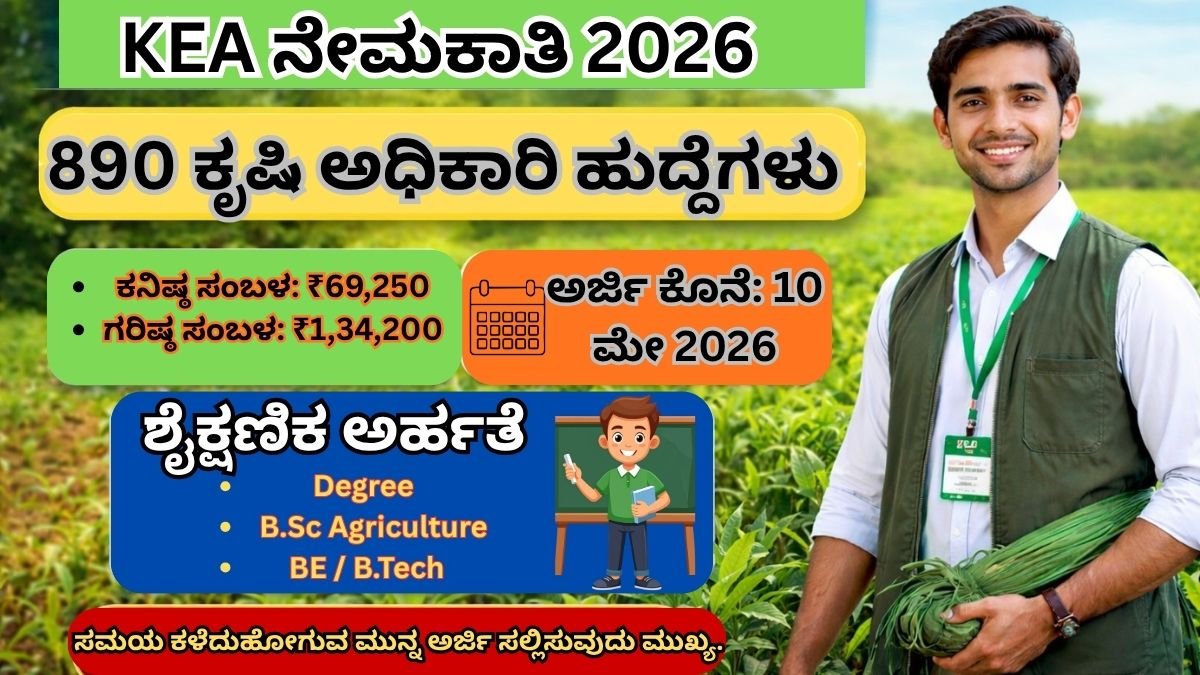 KEA Recruitment 2026: 890 ಕೃಷಿ ಅಧಿಕಾರಿ ಹುದ್ದೆಗಳು – ಕರ್ನಾಟಕದಲ್ಲಿ ಸರ್ಕಾರಿ ಉದ್ಯೋಗದ ದೊಡ್ಡ ಅವಕಾಶ!